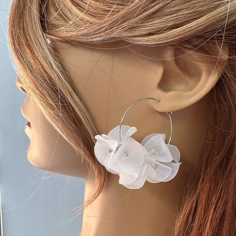 Translucent White Reclaimed 35mm Hoop Earrings -Gold Filled (looks silver)