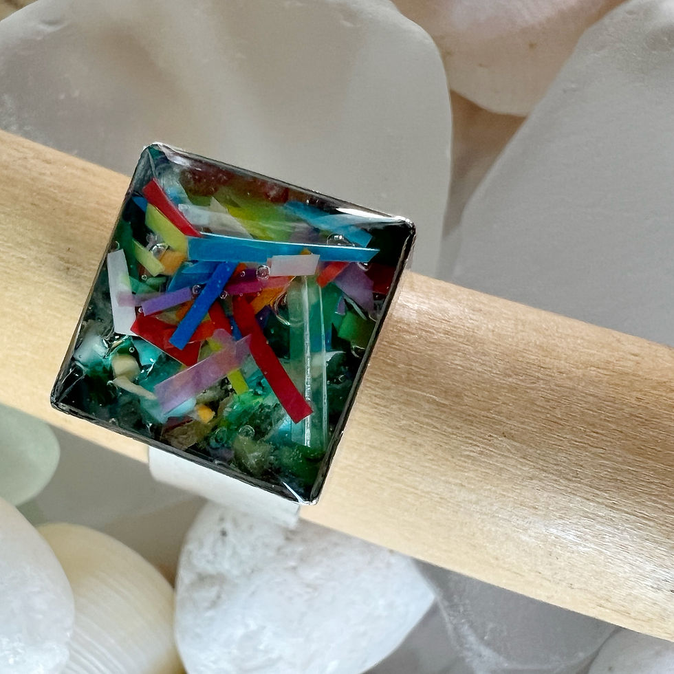 Multicolor Offcuts Chonky Trashy Adjustable Ring in Gold (048-SQ)