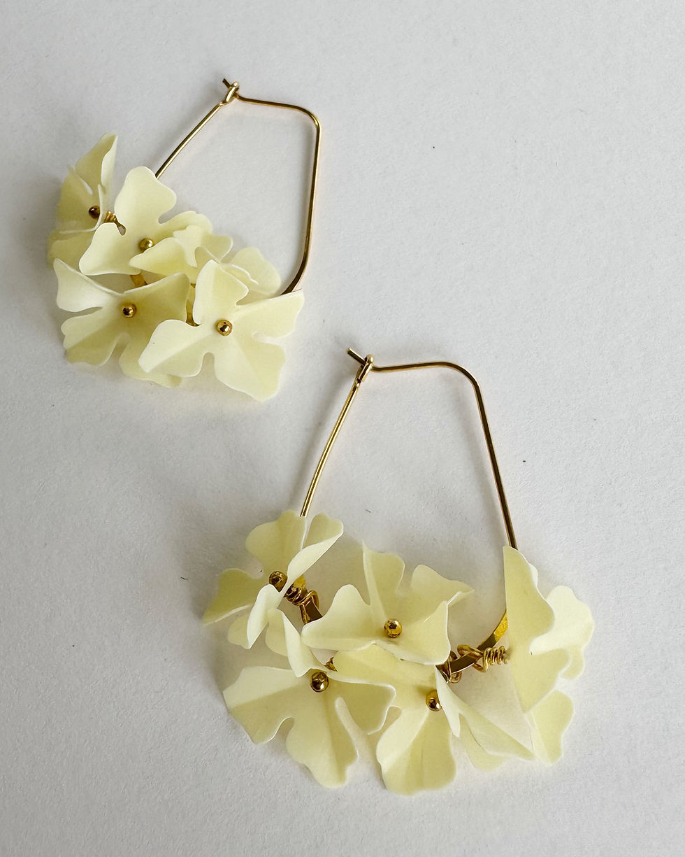 Esther - Recycled Flower Oval Hoop Earrings in Gold and Pale Yellow